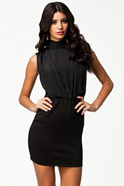 Kaamastra Black Polyester Halter Neck Short Dress for Women