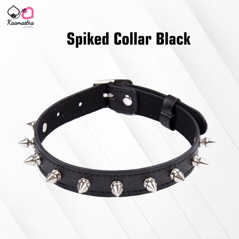 Kaamastra, the bedroom with a spiked collar. Show off your -not so sweet- side and add a little punk glamour to your collar collection. The choker is 1" thick, made from high-quality Premium leather, and comes with an adjustable rolling buckle 17-inch length so it will fit most people. Each spike is made from brass which has been nickel plated, and is the screw-in kind and isn't that sharp. Has double cap rivets for comfort. This black studded choker makes a unique gift to show your appreciation to anyone. Total length:17 inchwidth:0.8 inch.